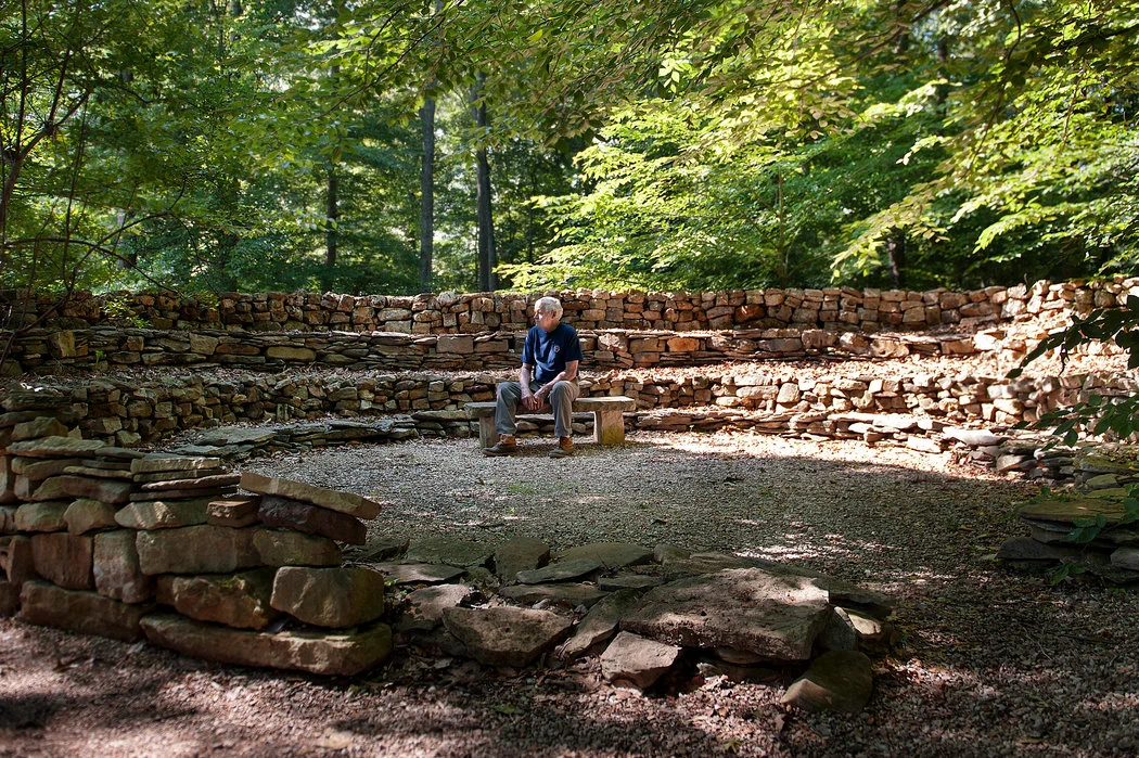Eight million pounds of stone - that is approximately what Tom used to build this tribute to his great-great-grandmother - the largest unmortared wall in America and the largest memorial anywhere to a Native American woman. It is recorded in the Library of Congress. There are two parallel sides to the wall: one for her journey to Oklahoma and the other to represent her journey home; Tom sought to place a stone for each of Te-Lah-Nay's steps. A tourism brochure might call it the Wichahpi Commemorative Stone Wall, but everyone who knew of it simply called it "The Wall". Traveling there has become a pilgrimage for people from all over the world - from neighbors, to native people, to Tibetan monks, to artists like Rosanne Cash - who mentioned the wall in her song, "A Feather's Not a Bird". It is a spiritual place, even for those who follow no formal religion or dogma.
